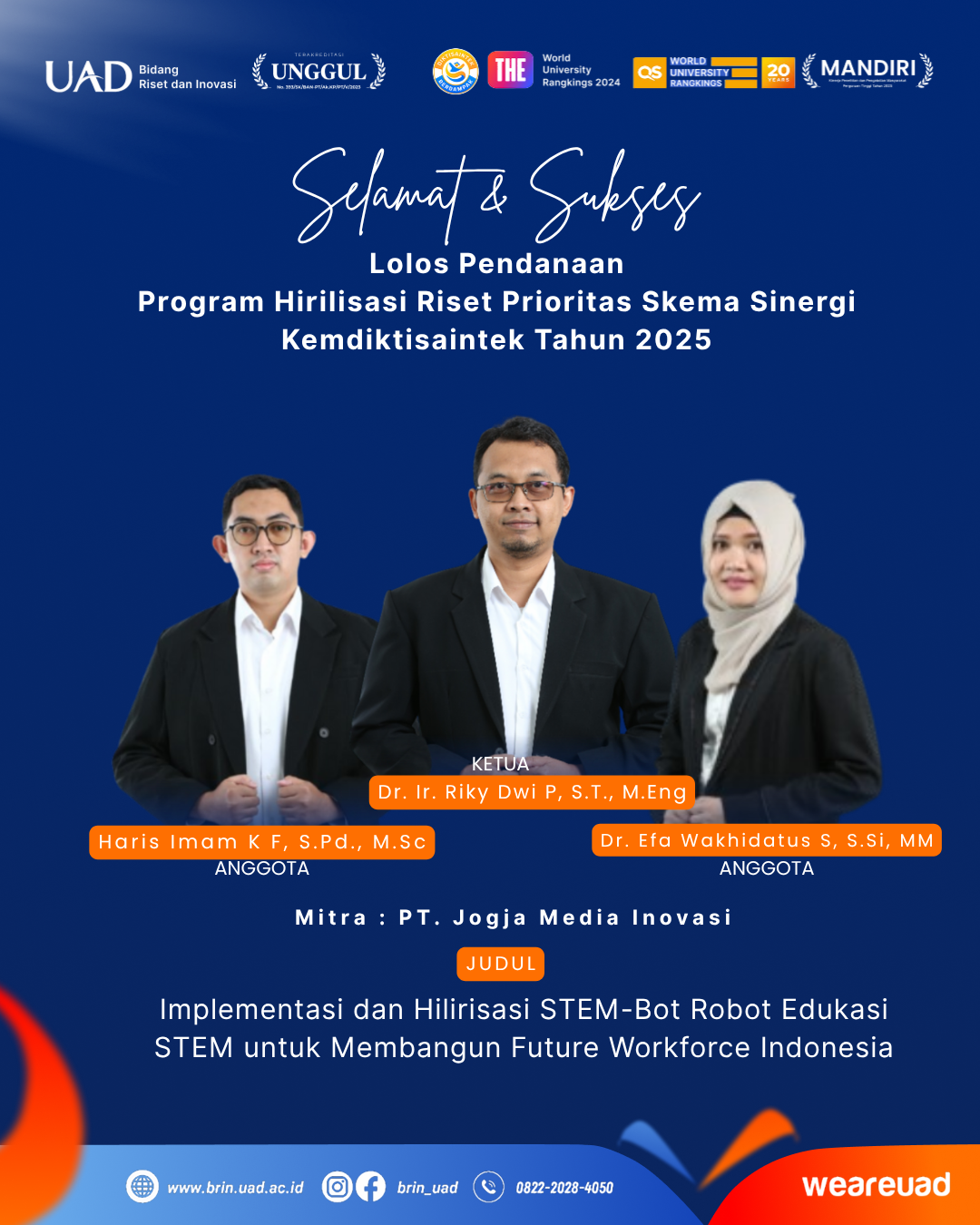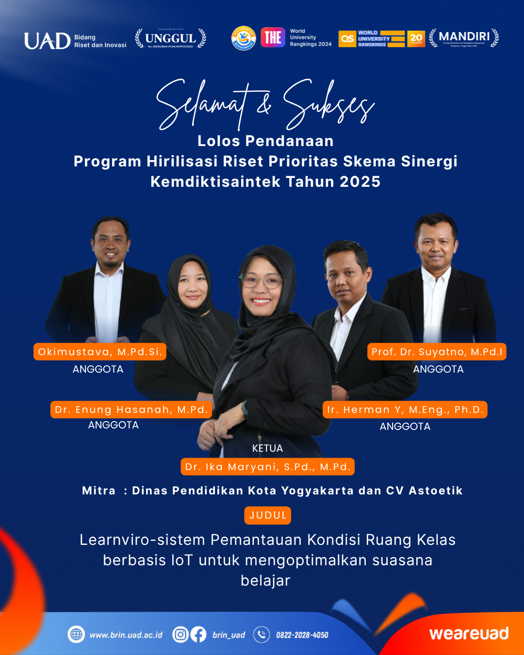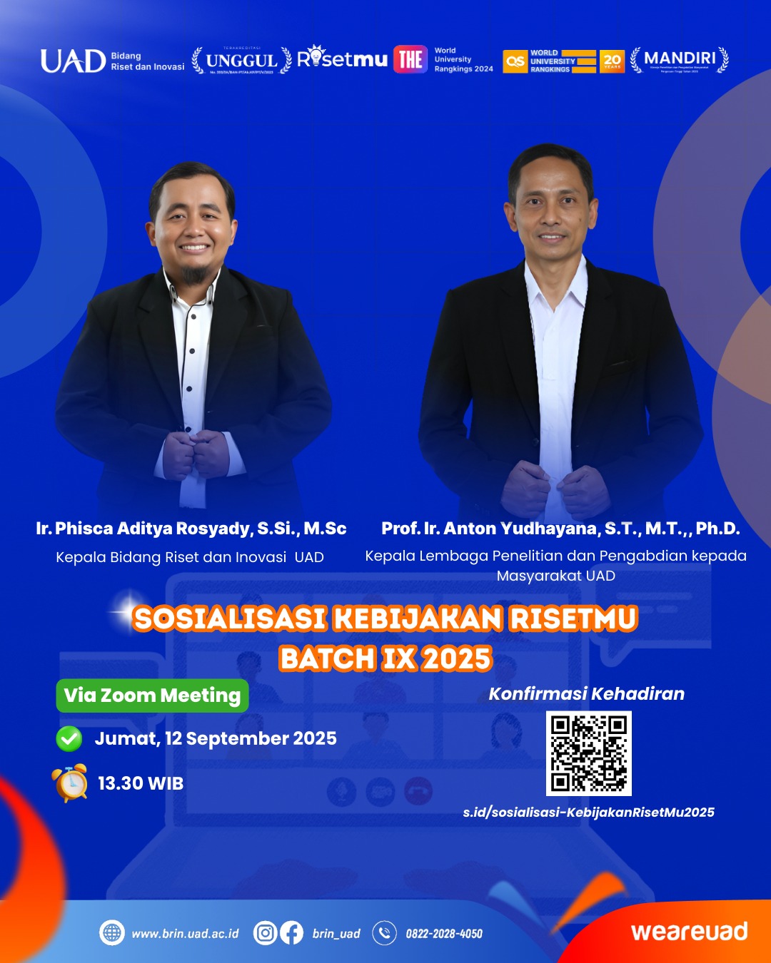 #weareuad #universitasahmaddahlan #uadjogja #muhammadiyah #islamberkemajuan #BRInUAD #RisetInovasi #Penelitian #RisetPrioritas #Kemdiktisaintek#UAD #RisetUAD #InovasiUAD #HilirisasiRiset #Kemdiktisaintek2025