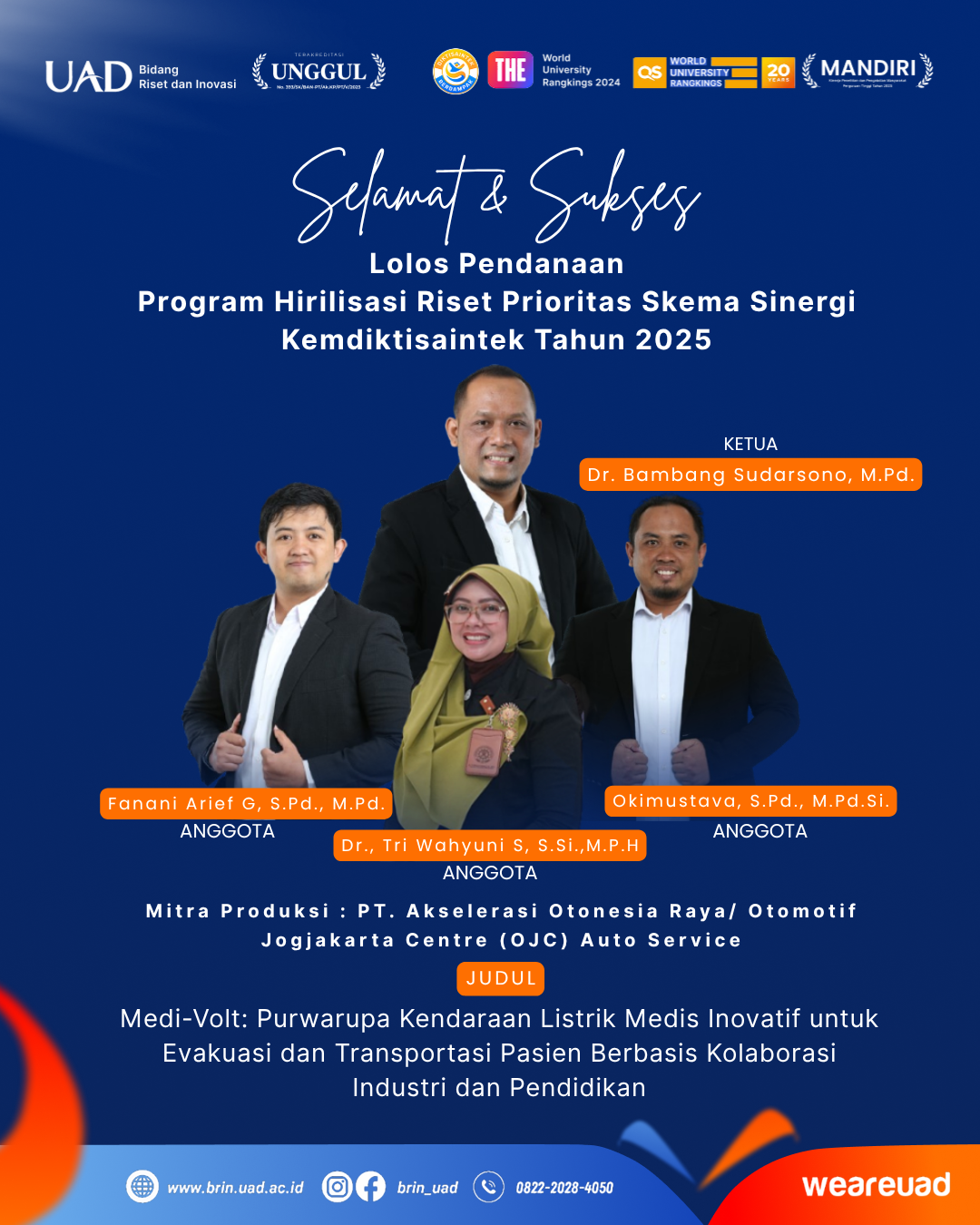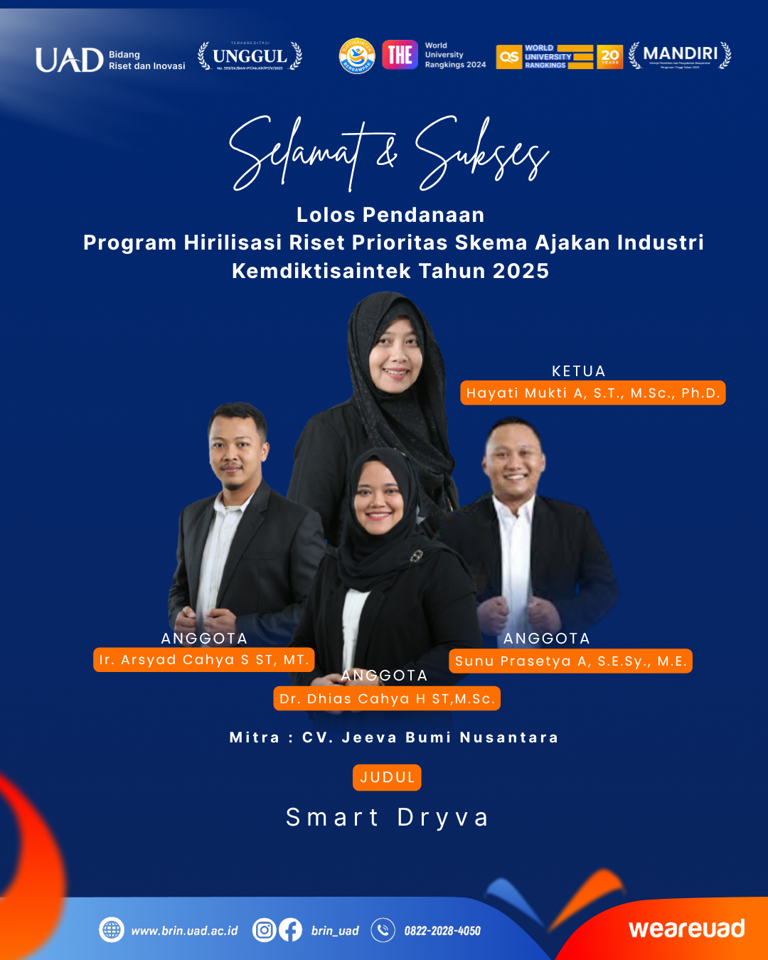#weareuad #universitasahmaddahlan #uadjogja #muhammadiyah #islamberkemajuan #BRInUAD #RisetInovasi #Penelitian #RisetPrioritas #Kemdiktisaintek#UAD #RisetUAD #InovasiUAD #HilirisasiRiset #Kemdiktisaintek2025 #SmartDryva